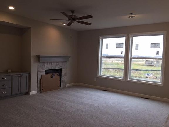 Our Lewis 3 Car plus bump garage plan Beautiful Kitchen with Shale Grey cabinets, back splash, Quartz counters! master with box vault, ceramic tile walls ! main level great room with gas fireplace, and built in cabinet! Plus a unfinished Lower level walkout on a holding pond! We have the NEW SMART HOUSE INCLUDED! Ring Door bell, Alexa+ MORE! Ask about the two new parks that will be going in adjacent to our neighborhood!