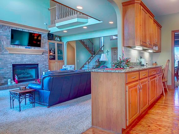 Fantastic home nestled on a quiet cul-de-sac with waterfront views and awesome sunsets just waiting for you! Featuring 5 bedrooms and a huge bonus room over the garage. 4.5 Bath home. Owners' suite is like a retreat with it's own private deck and spa like bathroom. Enjoy outdoor living while relaxing on the main level deck and soaking in the hot tub. Fishing, swimming, kayaking, & paddle boarding on the water provides so much fun! The grand foyer welcomes your guests to the soaring ceilings and windows that provide immediate access to those awesome views! The daylight finished basement offers more space for entertaining and lots of storage and a workshop. The kitchen features granite countertops, and access to sun porch for more relaxing. Hang out at the firepit for beer & grilling hot dogs! Three car garage and all appliances are included.