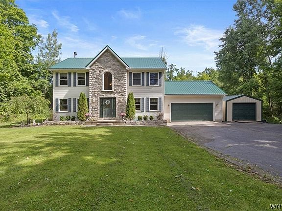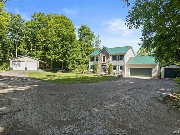 * 44+ ACRES * CUSTOM '04 BUILT CENTER ENTRANCE COLONIAL * Front Foyer W Half Bath / Refinished Hardwood Floors & Recessed Lighting Throughout 1st Floor / French Doors Lead To Office W Laminate Floor / Spacious Living Room / Open-Concept Kitchen W Granite Countertops, Island, Two Sinks, New Appliances '24 Included / Sun-Drenched Morning Room W Cathedral Ceiling, Skylights, Tile Floor, Ceiling Fan / Family Room Has Wood Burning Fireplace, & Laminate Floor / New Carpet Up The Stairs & In Two Bedrooms '24 / Two Other Large Bedrooms With Laminate Flooring / Primary Bed & Bath W Ceiling Fan & Recessed Lights, Whirlpool Tub, Dual Sink Vanity, Standing Shower / Updated Full Bath W Tile Floor / 2nd Floor Laundry / Partially Finished Basement W Storage / Picturesque Yard Has Trex Deck W Vinyl Railings, Fenced & Maintained Inground Pool W Slide & Stamped Concrete Deck / 40x30 Two Bay Pole Barn '21 W Concrete Slab, Heat, & Electric / Blacktop Drive / Shed / 44+ Acres Filled W Trails, Walnut Trees, & 1 Acre Pond / Metal Roof '21, Whole House Generator '20, Central AC, 200 Amp Service, HE Furnace '23, HE HWT '20, Copper Plumbing / If Any, Offers Will Be Negotiated Tuesday June 25 @ 12PM