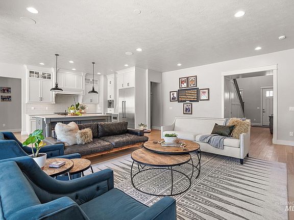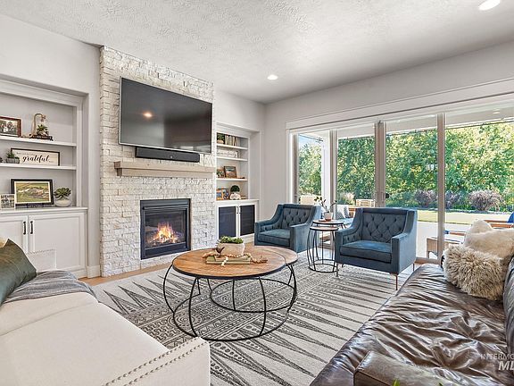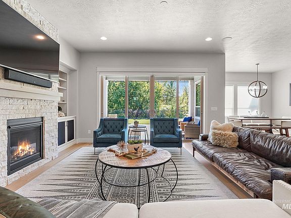 Welcome to your private retreat on the Boise River. This unique riverfront property custom built by Berkeley Homes boasts Bogus Mountain views and is mere steps from Star’s premier recreation area, Freedom Park. Swim, fish, paddleboard, or take wonderful walks along the river, all from your backyard. Appointed with high end finishes throughout, chef’s kitchen with Thermador appliances including built-in coffee barista, 48" range with six burners, griddle & double ovens, 36" built-in fridge and 30" built-in freezer. Hardwood floors throughout the entire main level, and an expansive 1500 ft backyard patio for enjoying the Boise River and the outdoors. Three generously sized bedrooms, large office, and an incredible bonus room complete with built-in home entertainment system, wet bar, beverage fridge, dishwasher, full bathroom, and separate patio with hanging daybed make this space one of a kind. Other upgrades include oversized HEATED garage, natural gas connections on all patios (2 downstairs, 1 upstairs), pre-wired electrical & gas for future pool, Control4 Smart Home Network for one touch control (audio, video, outdoor video security system, HVAC, home appliances, lights, & window coverings), Reverse Osmosis System & Water Softener, Upgraded CAT6 wiring throughout, Sound dampening material installed in upstairs floor. Enjoy the privacy and views from your backyard year round.