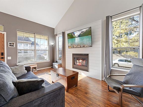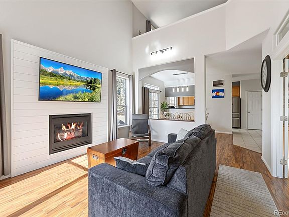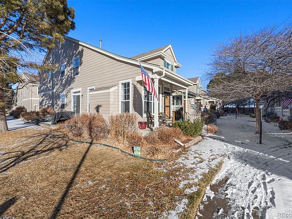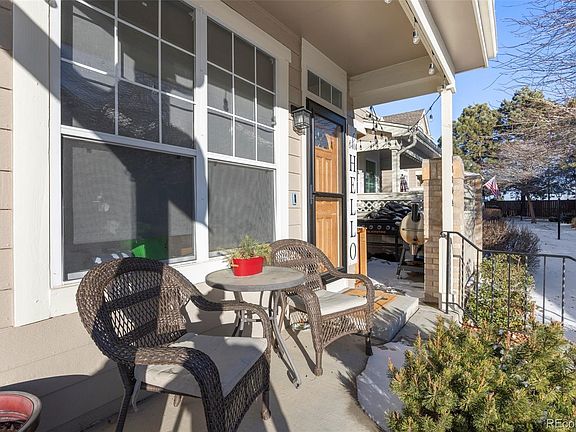 Presenting the spacious end unit you've been anticipating! Experience the expansiveness as you enter this open floor plan. Revel in your expansive library, adorned with ample shelving for your office collectibles. Retreat to your private patio after a long day, where you can effortlessly ignite the fireplace and unwind in the cool Colorado evenings. Entertain friends in the generously spaced dining room, complete with a sliding door leading to another patio. Explore the galley-style kitchen, boasting Blue Pearl exotic granite, abundant cupboard space, and a pantry for storage. Descend to the lower level, where a large open area doubles as a fourth bedroom with closets, a private full bath, and an impressive wet bar. Don't overlook the open loft area, offering a bird's-eye view of the living space. Your beautifully landscaped community beckons, and you're just steps away from the community pool! This home is move-in ready, so schedule your tour today!
