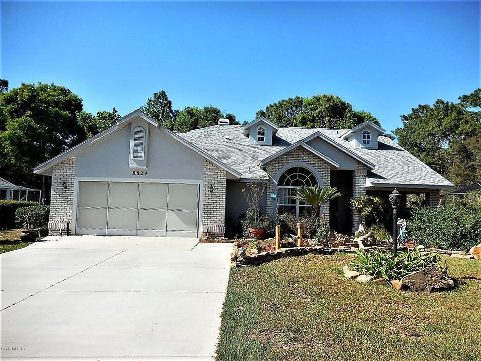 Look No Further!! Here is your dream home in Rainbow Springs Country Club! A Meticulously maintained 3 BR/2BA/2 Car split plan Stafford Model home with a self cleaning pool. Outstanding curb appeal grabs your attention. Step Inside through the covered Portico entry. Cathedral Ceilings, Formal Dining room, The living room opens to the lanai (with 2 skylights) & newly resurfaced pool. Beautiful Fireplace in living room, island kitchen with amazing granite counters. Oversized master suite with large bath featuring whirlpool tub, separate shower and dual vanities. Gorgeous slate tile throughout home with new 5 1/4 in base boards. New roof in 2015, brand new well pump for irrigation (huge bonus), new driveway, and the Fire place is gas or easily converted back to wood. Awesome Tiki table behin