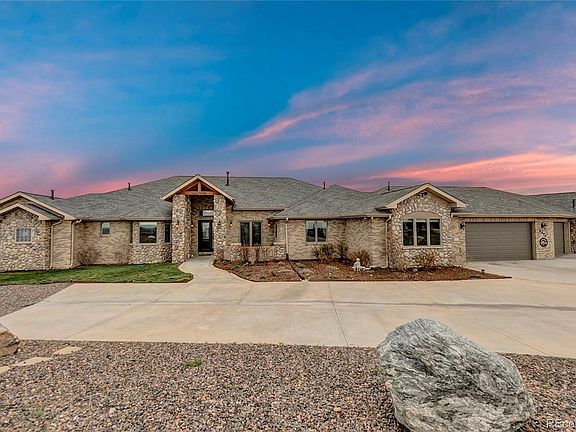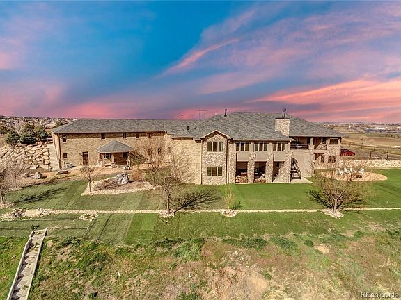 ->Drastic Price Reduction<- Breathtaking views in every direction! Brick and stone custom built home on top of a hill on 2.5 acres and backing to open space. This home sits in a quiet neighborhood in a cul-de-sac. You can see the entire Front Range of the Rocky Mountains, Downtown Denver, Riverdale Golf course, along with a few lakes and farms. Over 12,000 sq ft, 8 car garage, 8 beds and baths, and huge commercial type office space. The main level is over 6000 sq ft! 4 of the 5 bedrooms on the main level have private bathrooms. There are two flex rooms on the main level and a library/den as you enter the home. Amish hand-scraped floors, granite in kitchen, and 3 fireplaces. Basement has a large bedroom w/sitting area and full bathroom plus tons of unfinished space to use as you wish or finish into additional living space. Perfect home for a business owner with large office space onsite. The office is attached to the home but has separate entrances for business access only. Office space complete with reception area, 4 private offices (two could be bedrooms), a kitchenette and dining area, and 2 bathrooms. Too many amazing features to name here! Please take the time to review room information and visit the interactive 3D tour! HOA allows for Horses. Stairs in the backyard lead to potential horse pasture or future pen area.
