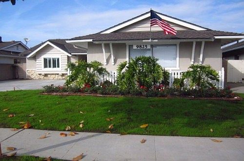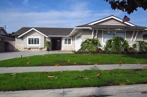 Complete info: http://9825laarenacircle.AgentMarketing.com - TURNKEY. Popular Meadow Homes neighborhood in family-centric Fountain Valley. Drive up to lush, colorfully landscaped front yard, a show stopper. Inviting 100% walnutpa oak wood double door entry welcomes you into its huge, open floor plan boasting 4 spacious bedrooms, 2.5 baths, and 1864 square feet of family friendly living space. Completely remodeled inside and out - freshly new interior and exterior paint, new 24x24" porcelain tile flooring thru-out and brand new high end carpet in bedrooms, charming brand new slab emerald pearl white fireplace, fully renovated kitchen with walnut oak cabinets, courtstone countertops, and stainless steel Whirlpool appliance. Slider door in living room leads to fully permitted family room, which can also be used as an entertainment or exercise room. All bathrooms are fully remodeled with courtstone counters (matching thru-out the house) and new vanities, Dining and family rooms look out to beautifully landscaped, sunny, peaceful 7,405 sqft backyard. Separate laundry, Large 2 car garage, plenty of storage through-out. Close to Fountain Valleys great schools, including FVHS. Conveniently located to I-405 freeway and innumerable shopping, dining, Huntington Beach, and Mile Square Regional Park. Must see to appreciate.