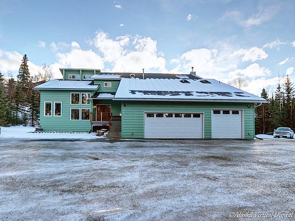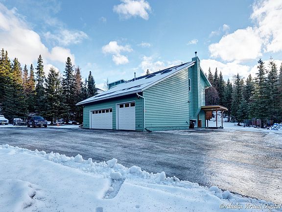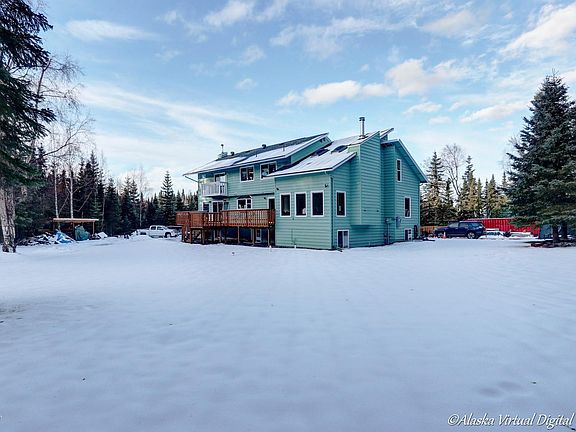 Alaskan luxury! Enjoy the large open living spaces equipped with a fireplace place, wood-burning stove & gorgeous hickory floors. Chef's dream kitchen with large island, solid service counters, double ovens, stainless steel appliances & walk-in panty. Soaring ceilings with tongue & groove wood accents, skylights and loft. Enclosed office area on main level with built-in desk & storage. (see more)