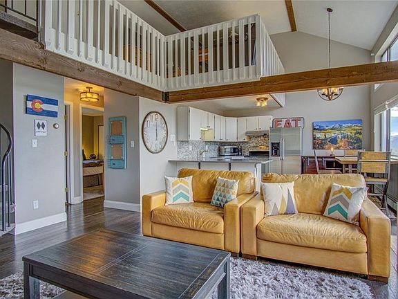 Breathtaking panoramic views from this top floor unit in Silverthorne! The open-concept kitchen offers quartz countertops, stainless steel appliances, and an eat-in bar. This 2 bedroom, 2 bathroom condo with a loft comes with covered parking and amenities such as a pool, hot tub, sauna, racquetball and tennis courts. Buffalo Ridge Complex has great access to hiking/biking trails, short walk to a bus stop, close to great shopping and restaurants, and within 30 minutes to 5 major ski resorts.