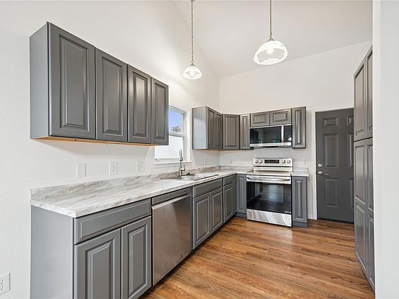 - Included: Dishwasher, Disposal, Microwave, Electric Range, Electric Oven, Stainless Steel Appliance(s), Gas Water Heater