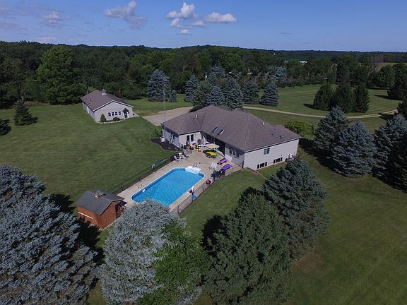 A well maintained ranch home in the middle of 10 beautiful acres. Designed with an open floor plan concept with a great room as its centerpiece. 3 large bedrooms and 1 generous master suite with an additional 1 1/2 baths. Large partially finished basement with look out windows. Enough indoor parking spaces for 5 vehicles. A detached second garage with wood burner, heated office and separate space for animals. Over 450 ft of road frontage with the possibility of additional lots being sold. Plenty of room for farm animals and recreational toys.