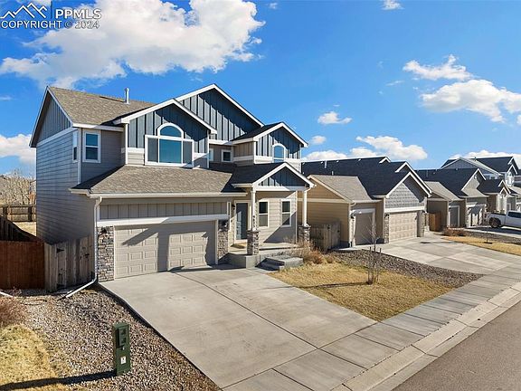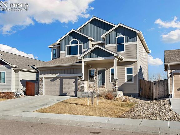 Nestled within the ever desirable Lorson Ranch, this well-maintained Saint Aubyn build (Delmon model) offers a comfortable and inviting atmosphere that reflects enduring charm. The main floor welcomes you with practical wood laminate in the entry and kitchen/dining areas, transitioning into the office/den and living room. The 3-car tandem garage offers extra parking and storage space. The kitchen features a large island with granite countertops, stainless steel appliances, and 42-inch cabinets with crown moulding. On the upper level, three bedrooms accompany the main bedroom suite, providing ample space and a laundry room for convenience. The master suite is a quiet haven with vaulted ceilings, a ceiling fan, and large windows. The basement, currently a versatile space, includes a full bath and bedroom, suitable for various needs. The backyard offers a sense of seclusion with open space behind. Located near Fort Carson, Peterson Space Force Base, shopping, parks and so many more amenities.