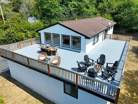 Ocean View Home Perfect for Entertainment with a beautiful high-beamed great room and a huge outdoor deck! This remodeled home is a 3 bedroom, 2.5 bath on 2.65 acres. The main living area is upstairs with the refurbished kitchen, primary bedroom suite, a half bath, and ocean views from the great room and deck. The lower level has 2 more bedrooms, a laundry room, and a full bath. This home is professionally decorated, currently in the vacation rental pool, and comes fully furnished. Improvements include new paint inside and out, kitchen butcher block countertops, and new windows in the great room and bedroom. New cadet heaters in each room. New bathroom shower and tub in both bathrooms and new bathroom countertops. The great room has large windows on 3 sides giving you wonderful light. There is an attached 2-car garage and a large wrap-around covered carport which can accommodate an additional 4 cars or a large boat. RV parking is available outside. The deck is an entertainer delight with a fire pit and chairs and a table seating eight. The level grounds offer plenty of yard space for a garden and dogs. ASK TO SEE THE 3D TOUR! Appointment only.