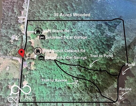 Another significant price reduction!!!! Seller looking for offers and wants it SOLD!! 39 ACRES...30 heavily wooded, 9 acres lightly wooded by homesteads..... Leiber STATE park around the corner.... Seller wants it SOLD!! 39 AMAZING acres.. WOODS, TRAILS, TREES, 2 HOMESTEADS, 2 LARGE out buildings. ONE MILE FROM CATARACT LAKE, FALLS, LEIBER STATE PARK. FUN FUN FUN. OUT BUILDINGS LARGE ENOUGH TO STORE ALL recreational vehicles BOATS, GATORS, MOWING EQUIPMENT... ONE HOMESTEAD 9826 Brann Rd. built in 1986 IS LARGE w/1200 squ foot ranch on crawl space w/ 3 brs, vaulted GREAT ROOM, laminate flooring, 2 full bths, laundry closet w/front load washer and dryer. Master suite w/ double closets, SPLIT Floor plan 2 brs and full bath on other side of home. Galley kitchen with stove, microwave, refrigerator. HUGE FRONT PORCH TO WATCH THE DEER, and nice sized back porch. DETACHED garage 3 car plus covered parking. Second home stead 4849 Cunot Cataract Rd placed in 1984 is a large modular trailer home 972 squ feet 3 bedrooms, add front enclosed entry and rear enclosed exit, has LARGE living room, HUGE eat in kitchen w/stove, refrigerator, washer, dryer in laundry room and 2 other nice size rooms. DETACHED 3 car garage with sliding doors great for storing boats, gator all outer play equipment. The property itself is AMAZING. Boat launch and Cataract Lake at the end of Brann road less than a mile from property, TONS of trails, HUGE RAVINE w/POND at the end(NOT ON/part of this property but is connected. LOTS OF beautiful wild life, hard and soft wood trees, .... PARADISE!! PROPERTY HAS MUCH MUCH MORE TO OFFER AND ENJOYMENT!