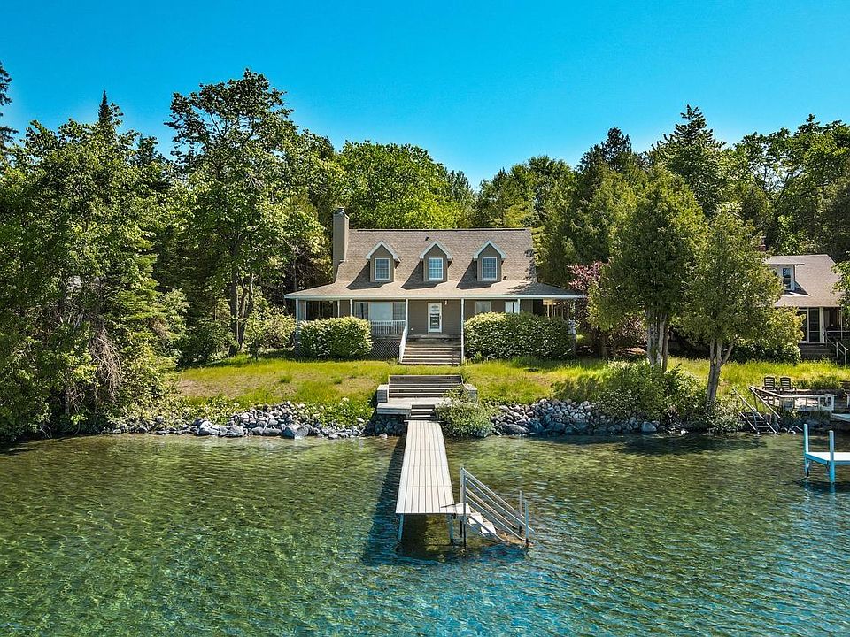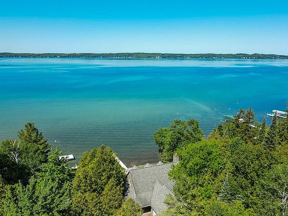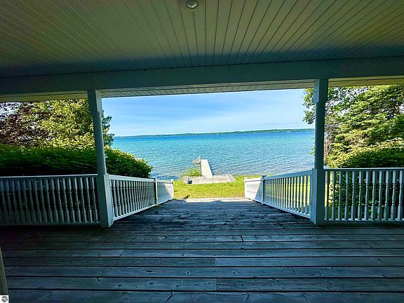 TURNKEY ON TORCH! A view from EVERY room! The Aqua-Turquoise waters will transform you. The sunsets will seal the deal. You deserve this! Come experience what living or owning on Torch Lake means. Quaint Cape Cod styling with extra large rooms and a floorplan that flows as nicely as the lake. This is one solid home! 4 bedroom 3.5 baths and 100 feet of private frontage. Featuring hardwood floors, solid wood doors, a natural fireplace, first floor primary suite, finished bonus room, tall concrete crawlspace, and a HUGE covered deck that surrounds 3/4 of the entire home. The finished bonus room has attached half bath with shower on lake level. Helena township is a use by right township so either bring your suitcases or your property manager! This home is stocked with all the supplies to sleep, feed, and entertain at least 12 people! A short bike ride away from adorable Alden, a short car ride from Traverse city, Bellaire, and Elk Rapids! Sold AS IS-what you see is what you get. All furnishings, bikes, fully stocked kitchen, bedding, supplies, and dock included. Come make "sandbar" your new favorite word. This is a part of the chain-of-lakes meaning direct access to Skegemog lake, Elk Lake, and Torch river. An amazing investment opportunity or lifestyle beckons. Eat the cookie, dance the dance, buy the house.