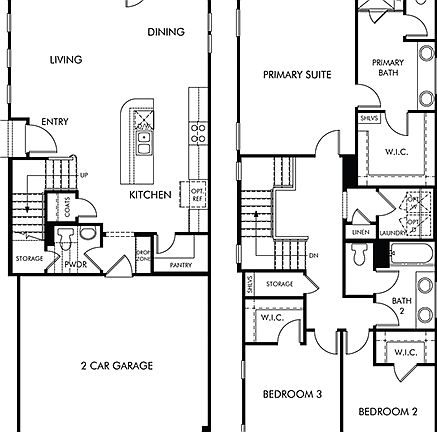 Linen cabinets with white/grey granite countertops, light brown EVP flooring with multi-tone carpet in our Elemental package. Stone cabinets with marble-look white quartz countertops, creamy wood-look tile flooring with gray tweed carpet in our Fresh p