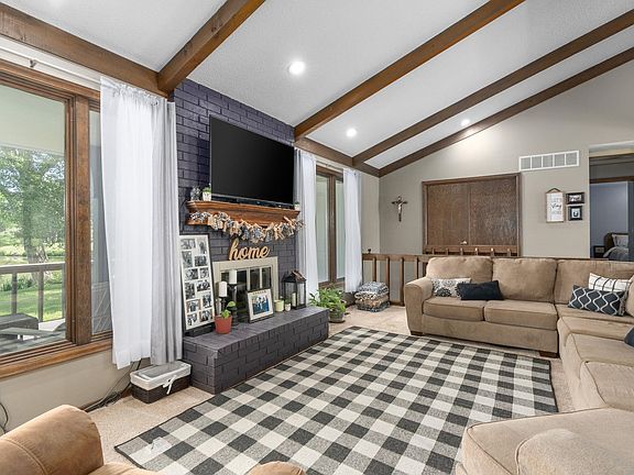 This gorgeous home boasts a spectacular view of the neighborhood pond, which it backs up to, and is situated in a secluded, charming neighborhood lined with trees and centered around ponds, offering the utmost in charm. The home features 3 bedrooms and 3 full baths. The main floor presents an open living, dining, and kitchen area with vaulted ceilings and hardwood floors in the kitchen and dining spaces. The living room is accentuated by wood beams and a gorgeous fireplace. The master bedroom on this floor is exceptionally spacious, offering stunning views of the pond. The main floor bathroom has been completely remodeled, featuring LVP flooring and a beautifully tiled shower. The basement includes an additional bedroom with an en-suite bathroom, ideal for guests. A family room with a wet bar provides a perfect space for entertaining. There is also a large exercise room that can be repurposed as a theater room, along with an additional bonus room. Outside, the back deck is covered and offers a spectacular view of the beautiful pond, making it an ideal spot for relaxation.