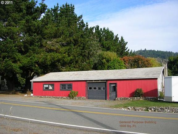 his large level corner lot is situated on .65 AC, with easy access to Hwy 101 S. In addition to a detached oversize 1 car garage, there is an extremely large general purpose building, boosting 1800 Sq. Ft., that once housed a business with plenty customer parking, facing Pedrioli Drive. Wonderful location on the Harbor Bench, public water too!