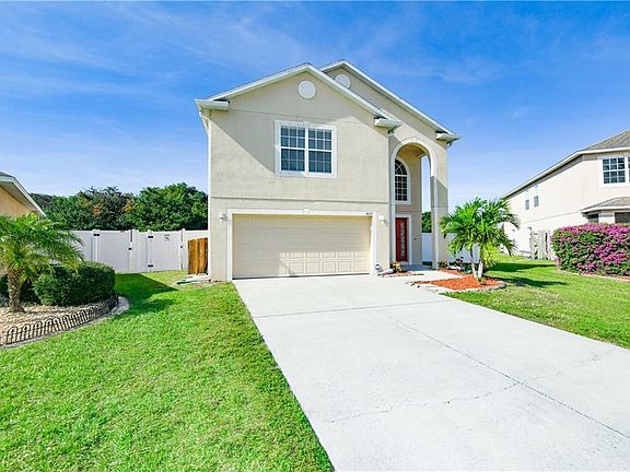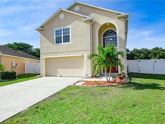 Ideally situated in west Palmetto, this lovely family home blends gracious comfort with space and serenity. A dramatic two-story entry foyer welcomes you home and leads into a delightful open layout. The main living area is comprised of the living room, kitchen, and dining room - all appointed with ceramic tile - and easily connects to the outdoor lanai. Prepare meals for two or a dozen in the spacious open kitchen complete with wood cabinets, electric range, Corian countertops, and stainless appliances. Retreat upstairs for peace and comfortable quietude. The master suite is wonderfully spacious and boasts on-trend wood-like laminate floors and a bath with dual sinks, walk-in closet, and a separate space with garden tub and shower. The second bedroom boasts dual closets while two more bedrooms provide space for all. Experience the daily enjoyment of the outdoors in the huge backyard. A concrete patio is ideal for dining alfresco or sit around the fire pit on a cool evening under a blanket of stars. Escape to the serenity of the adjacent pond surrounded majestic trees - a perfect setting to walk your dog or clear your mind on a sunny day. Located in highly sought-after Gillette Groves, the home is perfectly positioned for access to I-75 and I-275 where it's an easy trip to St. Petersburg, Tampa, Bradenton, or Sarasota.