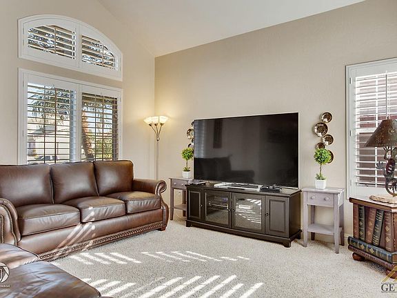 Fabulous Southwest home in Campus Park with upgrades galore! Turn key home featuring formal living and dining, separate family room with fireplace open to the kitchen with granite counter, double ovens and Travertine floors in both! Huge owners suite with sitting area, double sink, separate shower and tub! Don't forget the plantation shutters throughout! The OWNED solar will sure be a delight in the hot summer days plus take a dip in the sparkling waterfall pool and spa! Love to golf? You'll get plenty of practice in the backyard putting green! Perfect for entertainment! The 3 car garage with ample built-ins and attic space! This is a must see!