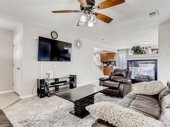 Great floor plan ~ 4 bedrooms upstairs ALL with walk in closets!! Open main level with 3 sided gas log fireplace. Gorgeous kitchen with granite counter tops, cherry cabinets and hard surface floors! All kitchen appliances are included. Steps from the stunning kitchen is the dining area and sliding glass door to the back patio with an over sized lot (one of the larger lots in the neighborhood). Upstairs you will find a nice loft area, the master bedroom is spacious with west facing windows, ceiling fan, 5 piece bathroom complete with oval soaking tub, 2 sinks and ample walk-in closet. The secondary bedrooms are good sized and share another full bathroom. The basement is ready for your finishing touches. Two car attached garage and east facing driveway. Location is great, one block to the Badger Park. Short commute to DIA, Buckley, Lite Rail, shopping and dining!