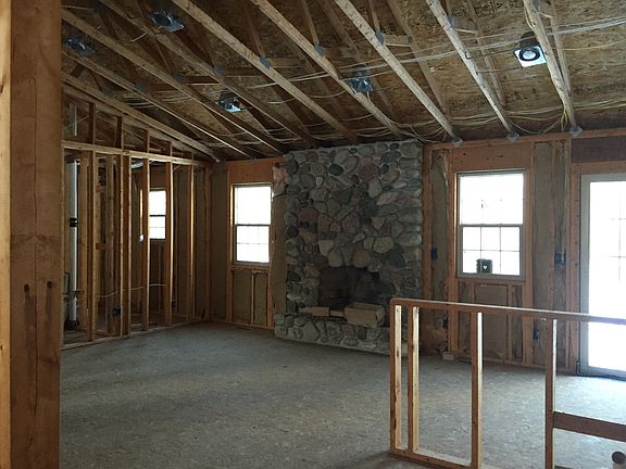 3 bedrooms, 2.5 baths. Beautiful handcrafted stone fireplace and real wood. New garage door and entry doors. House is about 80% finished, sold as is or $119,000 finished, pick out your cabinets, carpet and paint. Seller will offer land contract with $35,000 down and no payments first 12 months.