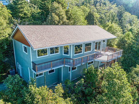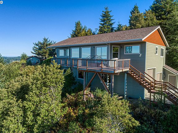 Top of the world Pacific Ocean views so expansive you can see the curvature of the earth! Big picture windows & an open floor plan allow you to take it all in and the deck invites coffee in the morning and libations at sunset. The lower level garage is large enough for a boat and/or RV and there is even a partially finished separate bonus room with bath for in-laws or guests. Plenty of room to expand living space! A family retreat, vacation, or retirement home awaits...MUST-SEE!