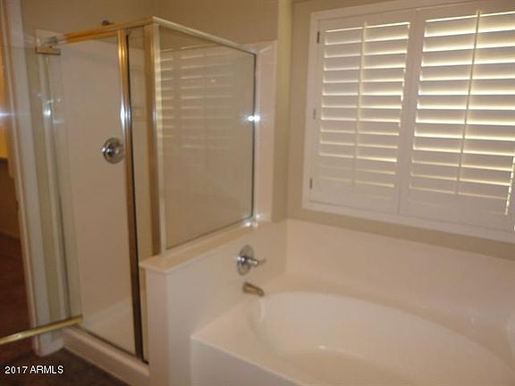 Home has vaulted ceilings, tile in all the right places,breakfast bar w/island,smooth cook-top with micro;upgraded lighting,french doors. BEAUTIFUL PLANTATION SHUTTERS throughout ENTIRE home.Upgraded railings with solid oak top,master Brm w/large walk-in-closet w/organizers.Separate garden tub & shower w/dbl sinks. Covered patio w/well manicured landscaping! Courtesy of American Homes 4 Rent Call Cliff at (623)251-0202 to schedule a showing rather than email. Thank you SA105905000 - HomeSmart