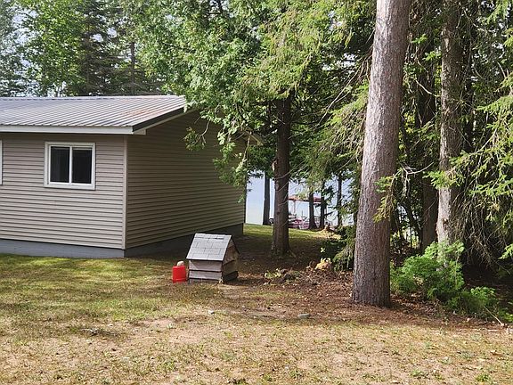 Wow! 3.71 acres with gorgeous views of 397ft. waterfront with Loons, Eagles and unbelievable sunsets! 181 acres of water that connects to 7 chain of lakes. This getaway includes the pontoon, 2 kayaks, 2 snowmobiles, lawn mower, wood stove in 24x32 pole barn with TV and table. Home comes with furnishings and cupboards filled with kitchen items and linens. Newer metal roof, furnace and water heater. Property is approved for 3 bedroom new home or remodel. Crawl space is water proofed and insulated. State land is all around the area, and trail head is only .6 miles away. This frame built 2 bedroom, 1 bath charming cottage will have you busy with hunting, fishing, biking, boating and trail riding with your side by side or horses. It's time for all the fall and upcoming winter activities.