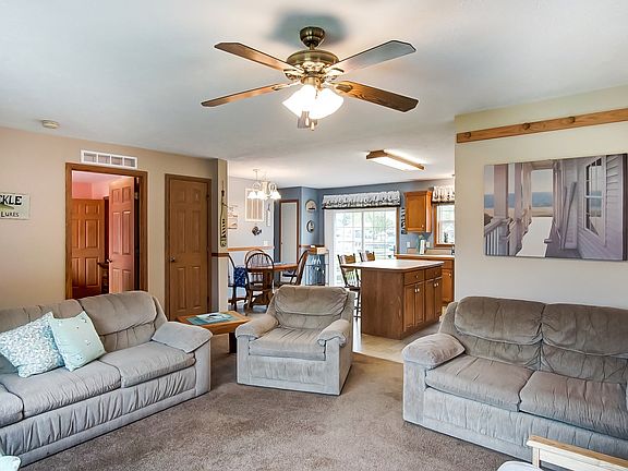 100' of Wawasee Lake channel front views and just quick boat ride away from from the heart of Lake Wawasee! Spacious home with three bedrooms, two full baths, and an open concept + split bedroom floor plan can be used as a lake home or for year round living. Enjoy lake life at this beautiful home with lakeside trex® deck overlooking the yard & water. Part of the Marineland Gardens neighborhood featuring community beach and boat launch. You'll also enjoy having plenty of parking space for guests and additional storage space in the oversized garage measuring 39 x 27!