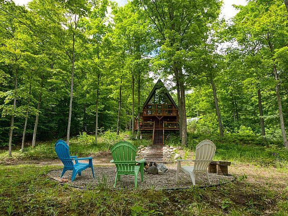 The sound of the Loons echoing off Bows Lake is reminiscent of the iconic movie, on Golden Pond. There's no reason to choose between a cottage on a lake or a cabin in the woods - you can have both in this beauty with 300 feet of private frontage and 3.93 acres! You'll savor the privacy and serenity this property can offer. Relax around the huge fire pit and take in nature at its best. Spring fed Bows Lake is perfect for canoeing, kayaking, fishing and swimming. Boyne Mountain for skiing, snow boarding and golfing is within 13 minutes. Snowmobile Trail 76 is within 2 miles. The North Country Trail for long distance hiking is located off of Camp Ten Road. Conveniently located 13 minutes from US 131 and I75. Short term rentals are allowed. New roof on house and mini barn in 2022. New roof on garage in 2021. New furnace in 2016. Maple hardwood flooring on main level. Pine hardwood flooring on stairs to loft & loft. Metroflor vinyl plank flooring in lower level. Maple cabinets on main level. Hickory cabinets in lower level.True Stream Fiber Internet is managed through Great Lakes Energy. No boats powered by internal combustion motors allowed. Bows Lake is a clean, quiet lake. The accuracy of all information, regardless of source, is not guaranteed or warranted. All information should be independently verified.