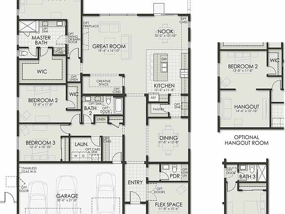 This spacious single-story 2768 sf great room plan offers 3 bedrooms + flex space and separate dining room, 2.5 bathrooms, with a 3-car garage. This home also has a nook and creative space off the kitchen. Loads of standard features including Smart and Secure Home package, and much more. The owner suite has a beautiful full bathroom with a walk-in closet.
