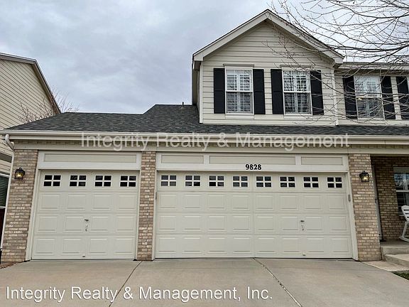 3 Bed/2.5 Bath, 1928 sqft - 9828 Thornbury Way - Available June 1. Gorgeous 3 bed, 2.5 bathroom home with 1928 square feet in the highly sought after community of Highlands Ranch! Features include formal living room, family room, eat-in kitchen, newer carpet, plantation blinds, gas fireplace on main level and 3-way gas fireplace in master retreat, ceiling fans, wired for surround sound, 3-car garage, and washer & dryer. The master suite includes a retreat area and is divided from the main master bedroom room by a beautiful 3-way gas fireplace. The 5-piece master bathroom has radiant heat flooring and a jetted tub. The kitchen has all stainless appliances including a french door refrigerator, dishwasher, built-in microwave and gas stove/oven, as well as granite counter tops and tile backsplash. The yard has an underground sprinkler system, and the rear is fully fenced in with deck to enjoy the beautiful Colorado outdoor weather. Plenty of storage in the unfinished basement. Community amenities that are included with rent are 4 recreation centers, multiple swimming pools, trails, basket ball courts, tennis courts, playgrounds, and more! Small dogs and cats allowed with $250 refundable deposit per pet and $25 monthly pet rent per pet. Professionally managed by Integrity Realty & Management. Security Deposit: $2,595 Lease Admin Fee: $200 Application Fee: $50 / adult Air Filter Program: $10 / month *Information contained in this advertisement is deemed reliable but is not guaranteed. Tenant to verify all information before entering into lease agreement. Disclosure: The hot tub in the rear yard is non-functioning and is not to be used. Is not being removed at this time. (RLNE6558565)