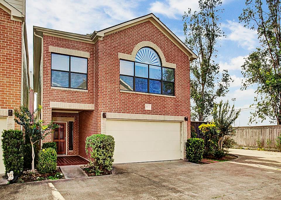Delightful & airy 2 story, 3 bed, 2 1/2 bath home, w/ large backyard complete w/ covered deck. Located at end of gated community & convenient to downtown & Texas Medical Center. Extended front porch welcomes you into large foyer which leads to first floor bedrooms, study & bath, or upstairs to kitchen/living areas & master bedroom. Home highlights include upgraded bathroom, beautiful tile & wood flooring throughout, & open island kitchen w/ stainless steel appliances. Visitor parking available.