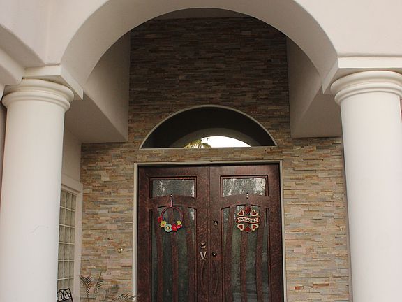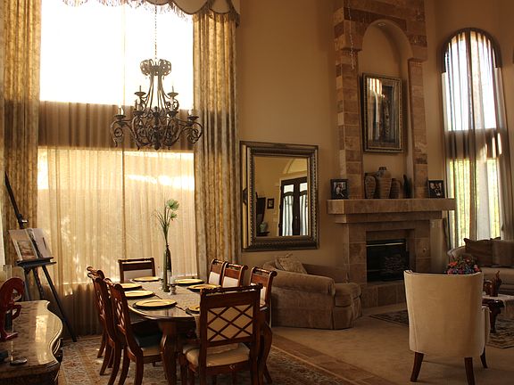 Custom home in Desert Trails gated community w/ 5-bed & 5-bath. Mosaic travertine flooring throughout, wet bar/fridge, formal living room w/vaulted ceilings, crown molding, picture windows, new/modern chandelier, and plantation shutters. ALL rooms w/walk-in closets, ceiling fans and carpet flooring. Backyard features beach entry pebble tech pool/spa, built-in BBQ, extra large 3-car garage w/epoxy floors/cabinets. A must see!