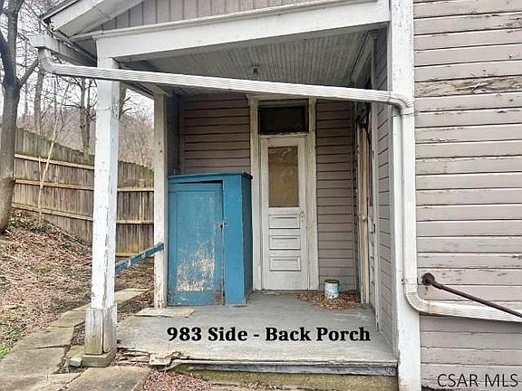 Investors!! Good investment opportunity awaits you in this fully occupied double with separate utilities in Greater Johnstown schools. This property is bringing in $725 a month in rent. Tenants pay all utilities; gas, electric, water, sewer & garbage. The 983 side has a living room, kitchen, dining room, 2 bedrooms, a full bathroom, walk-up attic & a basement. The 985 side has a living room, kitchen, dining room, 2 bedrooms, a full bathroom, walk-up attic & a basement. Covered front & back porches. Sewers done in 2016. Call for your appointment today!