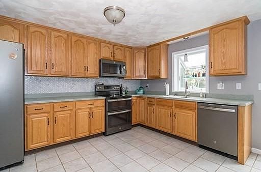 Beautiful move in ready updated colonial with composite front porch in excellent condition with fenced-in yard! Open floor plan features: Spacious eat in kitchen with tile back splash, stainless appliances, pantry, slider to deck, kitchen opens up to a large hardwood family room with cozy wood burning fireplace, hardwood dining room, updated 1/2 bath and mudroom with laundry. 2nd floor features hardwood floors, a beautiful spacious oversized master bedroom with large walk-in closet which includes custom built-ins, 2 additional large size bedrooms and a spacious updated full bath with tile floor. Other features include: oversized attached 2 car garage, lawn irrigation, generator connection, 1st floor laundry, ready to finish basement, hardwood floors throughout and more! Set back on a fenced-in lot and conveniently located near RT 95, commuter rail and shopping!