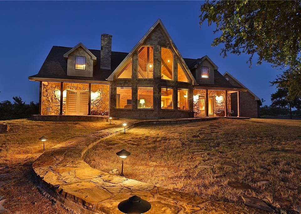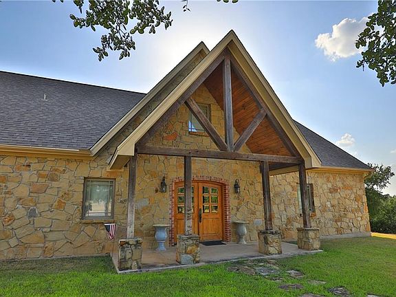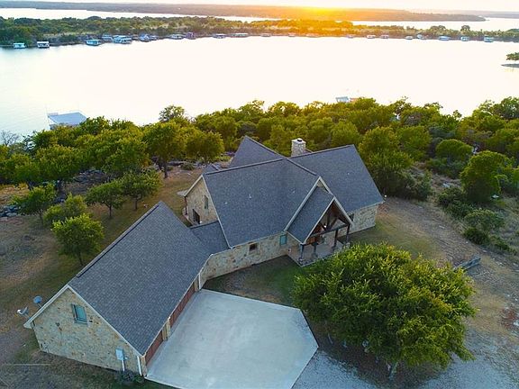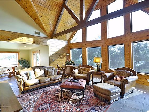 Magnificent home on Lake Brownwood built to fully enjoy the Texas Sunset. The home invites you in w its soaring vaulted ceilings and beautiful 2 story windows perfectly framing the view.The living room boasts exposed beams with a tall wood burning rock fireplace. All furniture, appliances, linens,kitchen utensils,and freezer convey making it easy to move right in. Almost 3 acres gives you plenty of privacy w beautiful trees and a dock that will fit all the toys.French country kitchen and dining area that will fit everyone. All rooms have wonderful views and the bunk room can really pile all the kiddo's in. Deepwater Estates is a very well planned gated community with large estates on a prime spot on the lake.