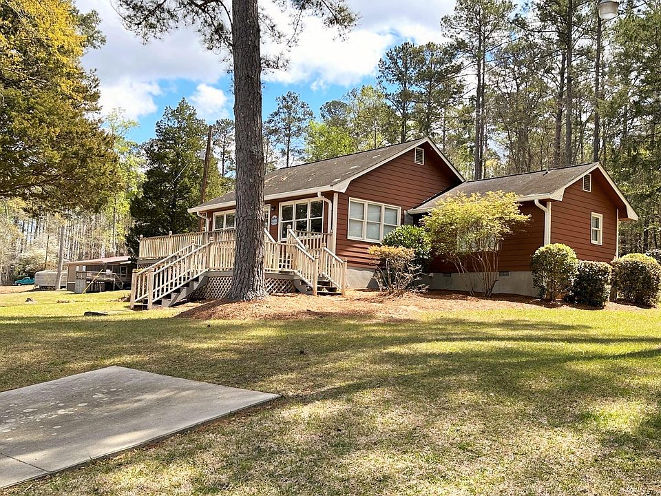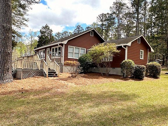 Wonderful lake cabin on 1.87 acres with over 300 ft frontage on Lake Sinclair! Originally built as a fishing cabin, the current owners added a master bedroom and bath, living/dining room combo, and a large lakeside deck. The kitchen has an island and eat-in bar. Other features include an outdoor shower, private boat ramp (in great shape!), double slip boathouse with over 5 ft water depth at end of dock. Also on this property you will find a 2 story storage building complete with a fish cleaning station, enclosed kitchen area with a refrigerator and standalone freezer with a large lakeside deck, perfect for grilling. There is plenty of storage for your law equipment, golf cart, side-by-side, or small tractor. Conveniently located between Milledgeville and Eatonton, less than 20 mins to Kroger!