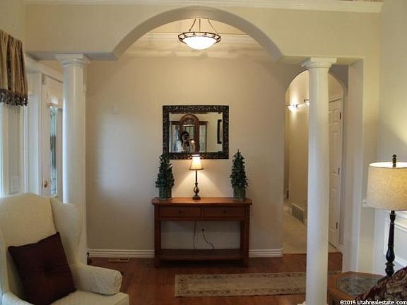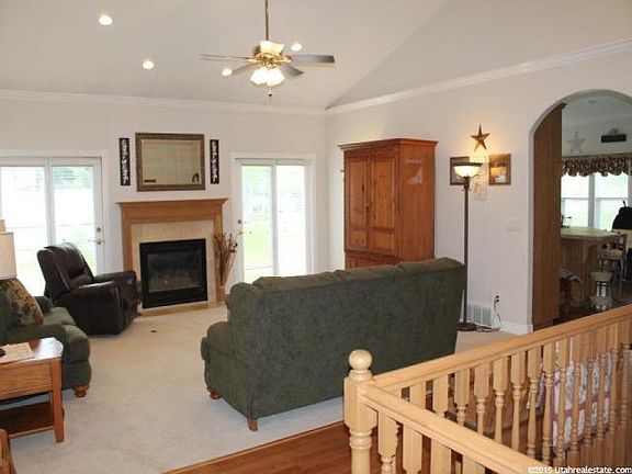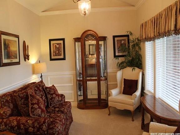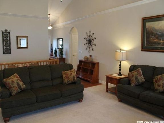 Beautiful Brick and Stucco home on a corner lot in a Great Smithfield Neighborhood! Gorgeous architectural moldings, vaulted ceilings in the great room with french doors to the patio. Enjoy a large and spacious kitchen with tiled countertops. Great views of the mountains and valley. The efficient, functional floor plan has upgraded lighting everywhere. You'll adore the master suite with two walk-in closets, separate shower and jetted garden tub. All bedrooms have ceiling fans and all bathrooms have tall countertops. Basement family room has surround sound! Lots of storage! This is a MUST SEE!