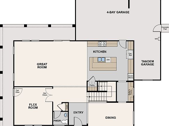 You'll love the Onyx's generous open-concept layout, offering an abundance of functional living and entertaining space. As you enter from a charming wrap-around porch, you'll find a formal dining room equipped with a convenient prep galley, offering direct passage to the well-appointed kitchen--perfect for entertaining. Boasting a center island, ample counter space, and a walk-in pantry, the kitchen overlooks a sprawling great room. Additional main-floor highlights include a versatile flex room--excellent for an office, hobby room, game room or home gym--and a four-bay alley-load garage with a tandem space. Upstairs, you'll find three comfortable secondary bedrooms with access to a full hall bath, an expansive loft with a large walk-in closet, and a laundry room. Completing the upstairs, a lavish owner's suite is highlighted by a roomy walk-in closet and a luxurious private bath.Options may include:Main-floor bedroom with a walk-in closet in lieu of flex roomSeparate tub in owner's bathroom in lieu of linen closet
