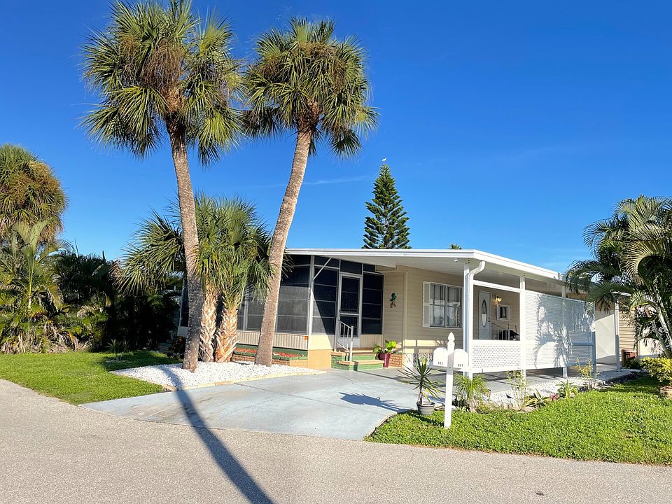 Upon entering this new listing you will feel right at home. The updated kitchen with all stainless steel appliances and beautiful cabinets and countertops with neutral tones feels very warm. The dining room which leads directly into the large living room has a custom bar/coffee bar. The large living space is extremely bright due to the many updated windows and the lanai which it's in the front of this home. The master bedroom is spacious and has three closets, one which is a walk-in and it also has an en suite with an oversized walk-in shower. Your friends and family will be delighted when they see the cozy guest room and private bathroom with a large tub for soaking after a long day at the beach. There are so many great features to boast about in this home so just call and make an appointment today to see it for yourself.