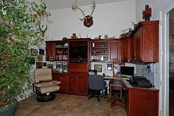 Gorgeous custom home, with so many extras! The gorgeous double doors open to a huge great room with beautiful windows, this room is very bright and open. There is a beautiful fireplace with a tall hearth, high ceilings, tile floors, ceiling fans in every room, and beautiful window treatments throughout. The kitchen is large, with a center island, double oven, tile counters, and lots of storage. On one side of the house is a guest bath and a large office, (13x17) with built in desk and cabinets, and the whole room is solid sheeted, for strength for hanging heavy items. The other side of the house has the 4 large bedrooms. The guest bath on this side and the front bedroom will accommodate a wheelchair with extra large doorways and a custom shower. The master is large, with a gorgeous bathroom with glass blocks to let in more light, a beautiful spa tub, and double sinks. Rock accents in the front, his and hers garages, RV parking, and a low maintenance yard.