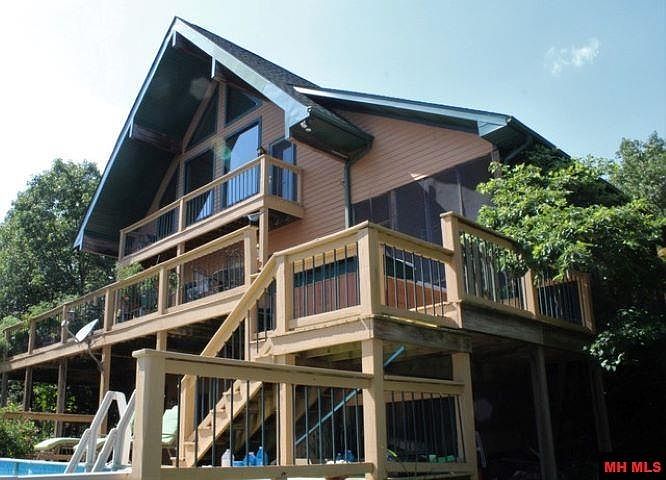 Ultimate privacy. Bull Shoals Lake home on 23+ wooded acres. Soaring glass. incredible lake & mountain vistas. This amazing 3 bdrm, 3 bath country home is surrounded by open sun decks, shady screen room, patio and woods. Lower level family room. Huge utility/storage. Upper level game room & loft. High end kitchen includes all appliances. 4 person Hot tub. Pool. Walking/4 wheeler trails. 3 car det. garage/storage loft. You won't ever want to leave.