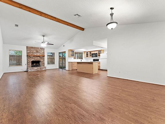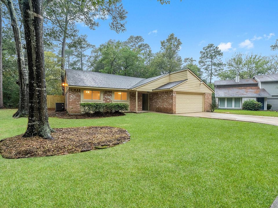 Freshly renovated 1712 SF, 3 BR, 2BA, 1-story with quartz countertops, tile showers, new carpet, new paint, new fence, and brand new appliances. Great layout with large, open floor-plan...vaulted ceilings in living room and master bedroom. Large yard (corner lot). Close to everything--good schools, restaurants, Market Street, the mall, Cynthia Woods Pavilion, Waterway. $2100/month. Security deposit = last month's rent. Pets okay; will consider large dogs. $500 pet deposit. Non-smoking tenants only. Appliances provided include dishwasher, electric range, and microwave. Tenant(s) responsible for yard upkeep and paying all utilities.