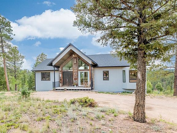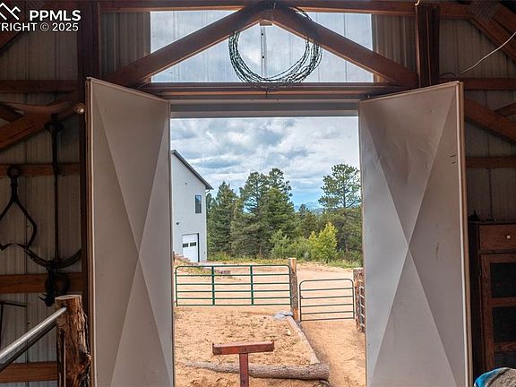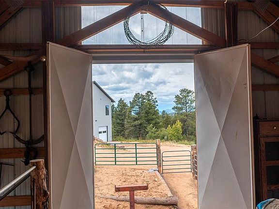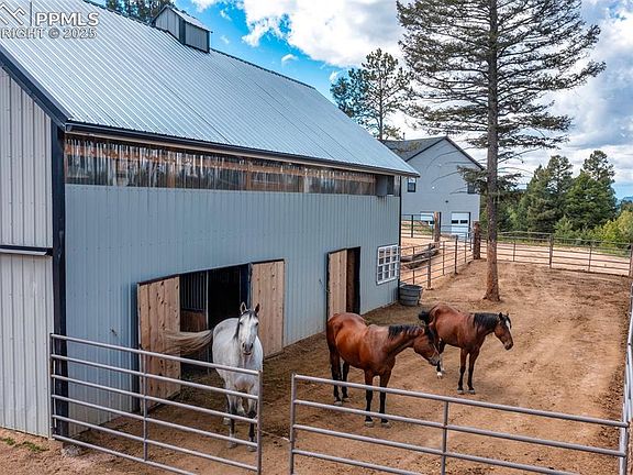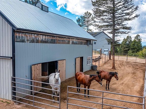 Contemporary Mountain Retreat on Over 4 Acres! Move-in ready with just a handful of details to complete, this home invites you to add the perfect finishing touches to suit your style. Experience unmatched beauty and luxury in this custom-built Colorado mountain home. Sweeping views and unforgettable sunsets, this retreat is truly one-of-a-kind. For horse lovers or hobby farmers, the 24x48 barn offers 1,150 square feet of space, complete with three stalls, a tack room, and a hay loft—a perfect setup for livestock, storage, or your next project. There is even electric water and sewer for an RV next to the garage! Step through the handcrafted 8-foot Winslow Shaffer doors, you’re welcomed into a great room filled with warmth, light, and character. Reclaimed 30-year-old pine beams and hand-hewn timbers brought in from Tennessee frame the space, while luxury vinyl floors guide you seamlessly from front to back. Soaring trapezoid windows invite the outdoors in, filling the home with natural light and showcasing the breathtaking mountain backdrop. The kitchen is a contemporary masterpiece, featuring gleaming quartz countertops that shift with the sunlight, pure black walnut cabinetry, and a convenient pot filler above the stove—every detail designed for beauty and function. Your master suite is a private retreat with a spa-like 5-piece bath and direct access to the deck. The thoughtful layout connects the walk-in closet to the laundry room and then to a bright home office—while overlooking your own barn and corral. Enjoy radiant heating with individual room controls, USB outlets thoughtfully placed throughout the home, and a cozy wood-burning stove for winter nights. Enjoy the expansive deck, where Colorado sunsets paint the sky and the quiet of mountain living surrounds you. Owner/builder has and will leave complete blue prints for the unfinished basement! Septic is sized for four bedrooms. Basement is plumbed for another bathroom.