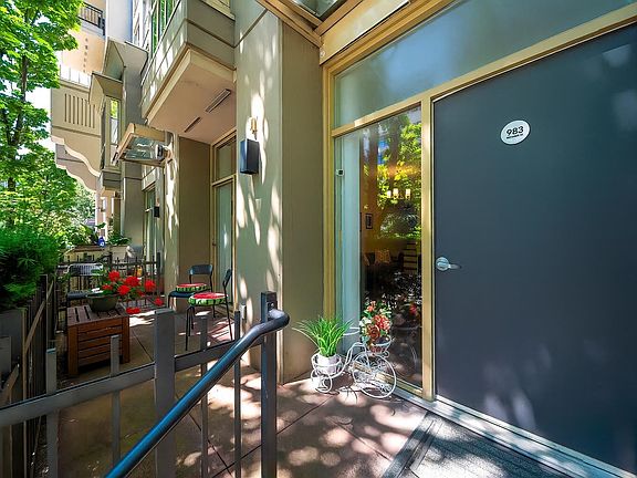 Location meets lifestyle — steps to Amazon, Microsoft, and top tech campuses! This BOSA-built 2-bed, 2-bath TOWNHOUSE at Mondrian I features a private street-level entrance, TWO PARKINGS, soaring 9ft ceilings, and a sleek open layout designed for modern living. Enjoy a fully renovated kitchen with Italian cabinetry, stone countertops, and statement backsplash, plus designer-finished bathrooms and a spacious primary with walk-through closet + bonus flex/office space. Live steps from Yaletown's best dining, Robson shops, and Canada Line. Amenities include full gym, sauna/steam, guest suite & more. Some photos are virtually staged. Tour the home: https://www.youtube.com/watch?v=A_VcYHgBLVY. Open House: Nov 21 Fri 4–6 pm; Nov 22–23 Sat & Sun 2–4pm