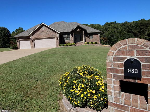 Welcome Home to 983 W Cattail Court in Nixa. This all brick home built in 2005 is nestled in Autumn Ridge Estates and conveniently located just off Hwy 160 and Rosedale. Front of home has mature landscaping and grand front porch. Living room is on main level and has vaulted ceiling and beautiful brick fireplace. Kitchen is large and has beautiful windows and access to deck that over looks backyard. Granite tile countertops, tall ceilings and great cabinetry are a must see in family size kitchen. Split bedroom floor plan places large master suite at one end of home. Trayed ceiling and large windows in master are a plus. Master bath has jetted tub, walk in shower, dual sinks and walk in closet. Two additional bedrooms and full bath round out main level. Downstairs you enter into family room