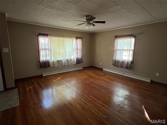 Two bedroom and one bathroom home in Kahoka. The main level has living room and eat-in kitchen. The basement is partially finished with family room, sleeping room, and utility room. There is a one car detached garage. Home is being sold as is, where is.
