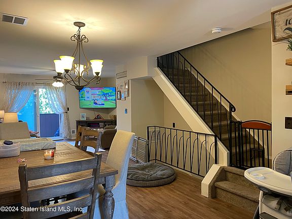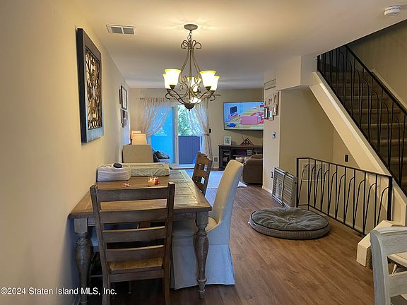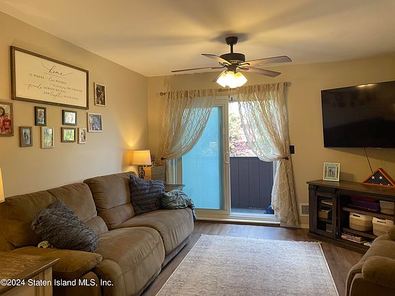 Move right in to this beautiful renovated 2 bedroom 3 bath condo with finished basement and wood burning fire place. New kitchen with all new stainless steel appliances and coffee bar. New wood floors in the spacious living room dining room combo that leads to new sliding glass door to balcony. New half bath on main level. New wood floors in both the primary and large bedroom. Main full bath newly renovated with full titled shower. Extra large attic with new electric.Finished basement with wood burning fireplace and new glass doors to new deck and private rear yard. All new windows and interior doors. New central air, furness and water heater. Close to all express buses, restaurants, shopping, Staten Island Expressway and Verrazano Bridge.