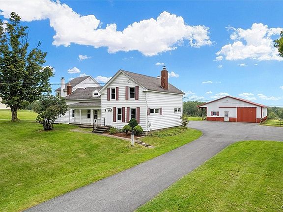 Charming country home on 95 scenic acres. 4 bedrooms with the potential of 5 or more. Second floor sunroom with panoramic views. New flooring, recently painted and upgraded spray foam insulation. Spacious master bath suite. Horseshoe driveway with expansive parking. Updated horse / pole barn and a two-story 52' x 32' wood frame barn. Equestrian property; three box stalls with sliding doors, tack room, large area for hay storage and much more. Low property tax assement. Why pay new construction taxes, when everything is right here! Situated in one of the most desirable locations in Central NY. 3 miles from Wolfspeed and SUNY POLY. 5 miles from Utica. Whitesboro School District. Motivated seller is willing to get creative with acreage to decrease purchase price.