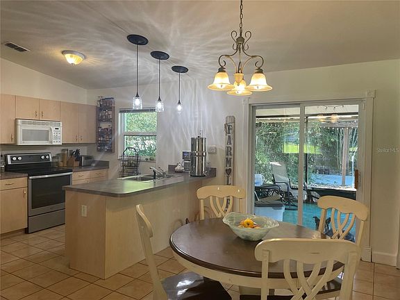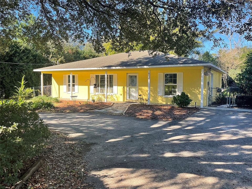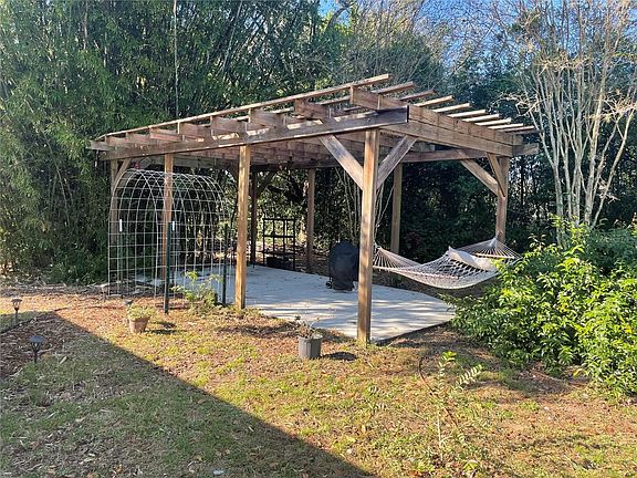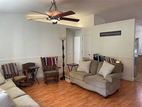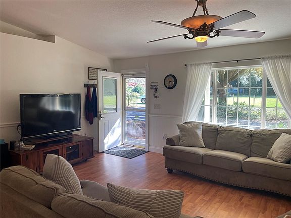 The circular drive welcomes you to this private 1.2 acre property with large trees and fenced yard. From the front porch you enter into nice open living area with vaulted ceilings, split bedroom floor plan, laminate flooring in living area and tile in the kitchen & dining room. Sliding doors welcome you to the 12x20 screen porch, a wonder spot to enjoy the peace of your private space. The pergola has plenty of room for a hammock and grilling area. The huge 24x32 barn/workshop has a 12x12 office area, room for the toys and tools and storage. Located between Dade City and Zephyrhills this home is tucked away and private, yet near to Centennial Elementary and Middle Schools, Churces, Hospital, Shopping