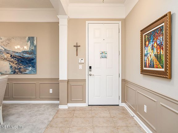 ALL ONE LEVEL, NO STAIRS w/Indoor Pool in Gated 55+ Sweetwater by Del Webb! This light and bright corner penthouse is serviced by 2 building elevators & has 2,129 sft w/ 3 bdrms + screened lanai w/storage closet & is move-in ready! Features include 10 ft Ceilings, 9 ft Doors, a Renovated Kit. w/ Quartz Countertops, newer SS Appl., Reverse Osmosis System, Plantation Shutters, new roof in 2023, new HVAC in 2020, a Screened Balcony w/Treetop Views. Residents also enjoy all the Del Webb amenities at Summerland Hall, a 20,000 sq. ft recreation center w/a fitness rm, indoor/outdoor heated pools, multi-purpose activity rm, arts & crafts rm, yoga/pilates rm, library, a billiards rm, tennis courts, bocce courts, croquet/volleyball & outdoor pavilion for picnics. Sweetwater is in a great location near St. John's Town Center and its many Restaurants, the Mayo Clinic, Mayport, UNF and FSCJ.
